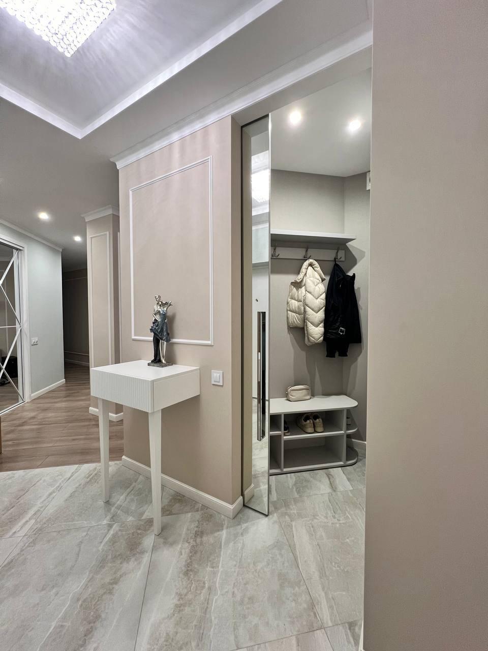Квартира укомплектована всей необходимой мебелью и техникой для комфортного проживания. Продумано множество мест для хранения (две гардеробные). Площадь и планировка квартиры обеспечат вам максимальный комфорт и функциональность.