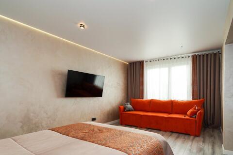 Квартира полностью укомплектована для комфортного проживания. Ремонт сделан из высококачественных материалов, сантехника премиум класса.