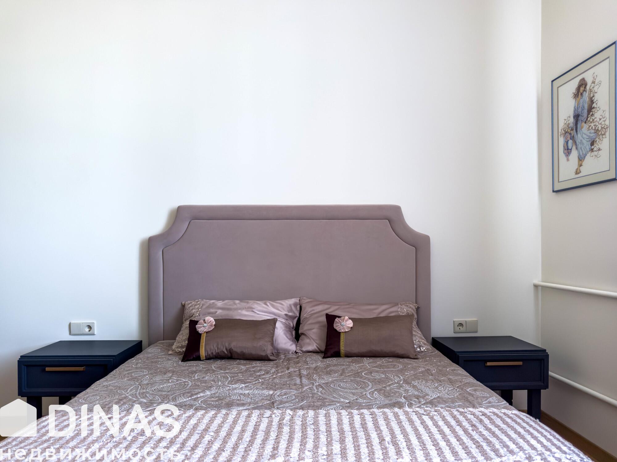 Полы выполнены из паркета и плитки, в спальне установлена большая удобная кровать, а в коридоре - встроенные шкафы.