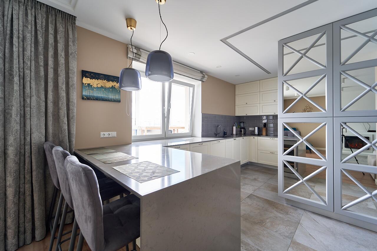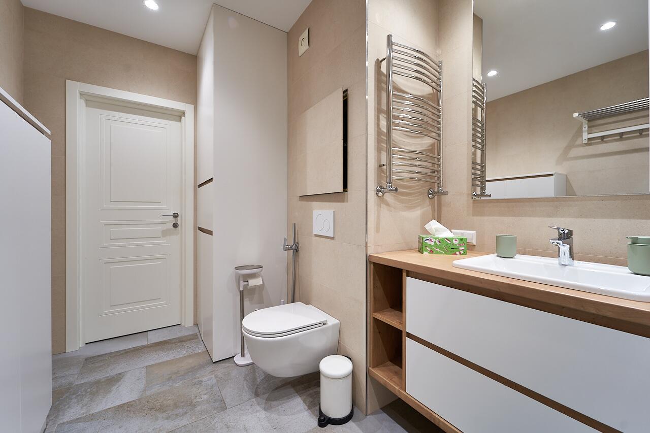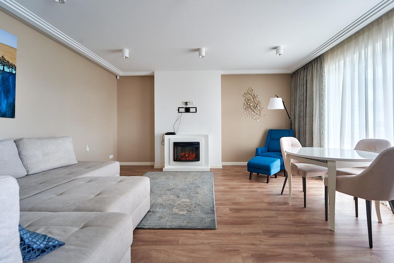 В квартире есть все необходимое для вашего комфортного проживания: кондиционер, телевизор в 2 комнатах, свч-печь, духовой шкаф, холодильник, мелкая бытовая техника, стиральная машина, видеодомофон, биокамин, посудомоечная машина и многое другое.
