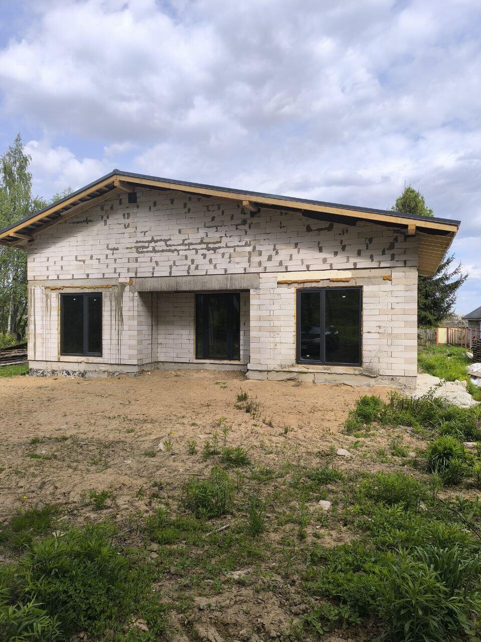 Общая площадь участка 11 соток, дома 199,3 м2 , материал стен блок, крыша металлочерепица, панорамные окна, двухкамерные стеклопакеты с усиленным алюминиевым профилем, с затемненными стеклами. Фундамент блок фбс установлены на глубину 2 м с ростверком. Высота потолков 2,7 м. Залит черновой пол. Электричество в доме - подведено 2 линии, для электро отопления и освещения. Установлено электощитовое оборудование. Вода, канализация центральная, заведены в дом.