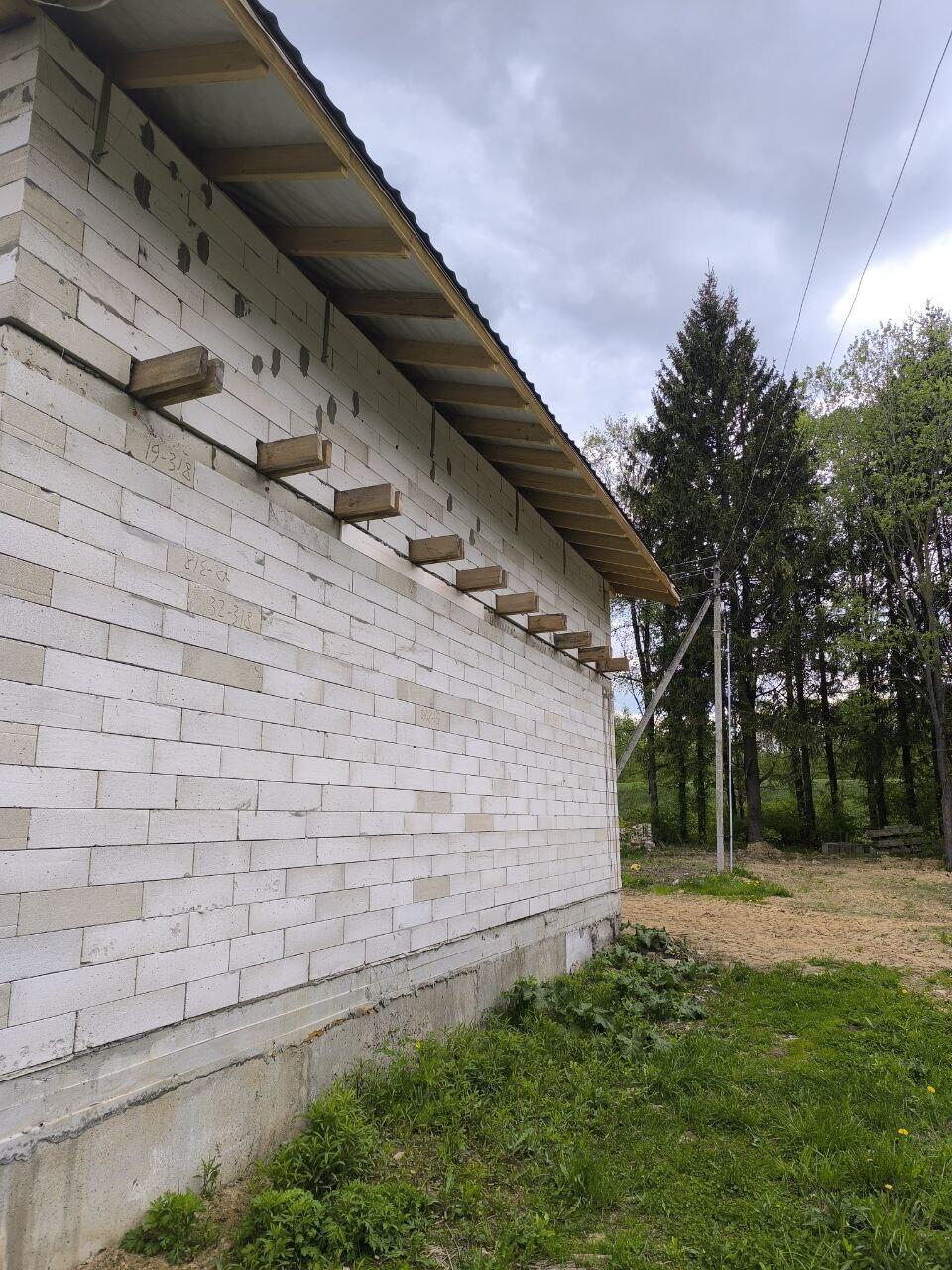 Проект предусматривает навес для авто с хозпостройками. Остаются строительные материалы.