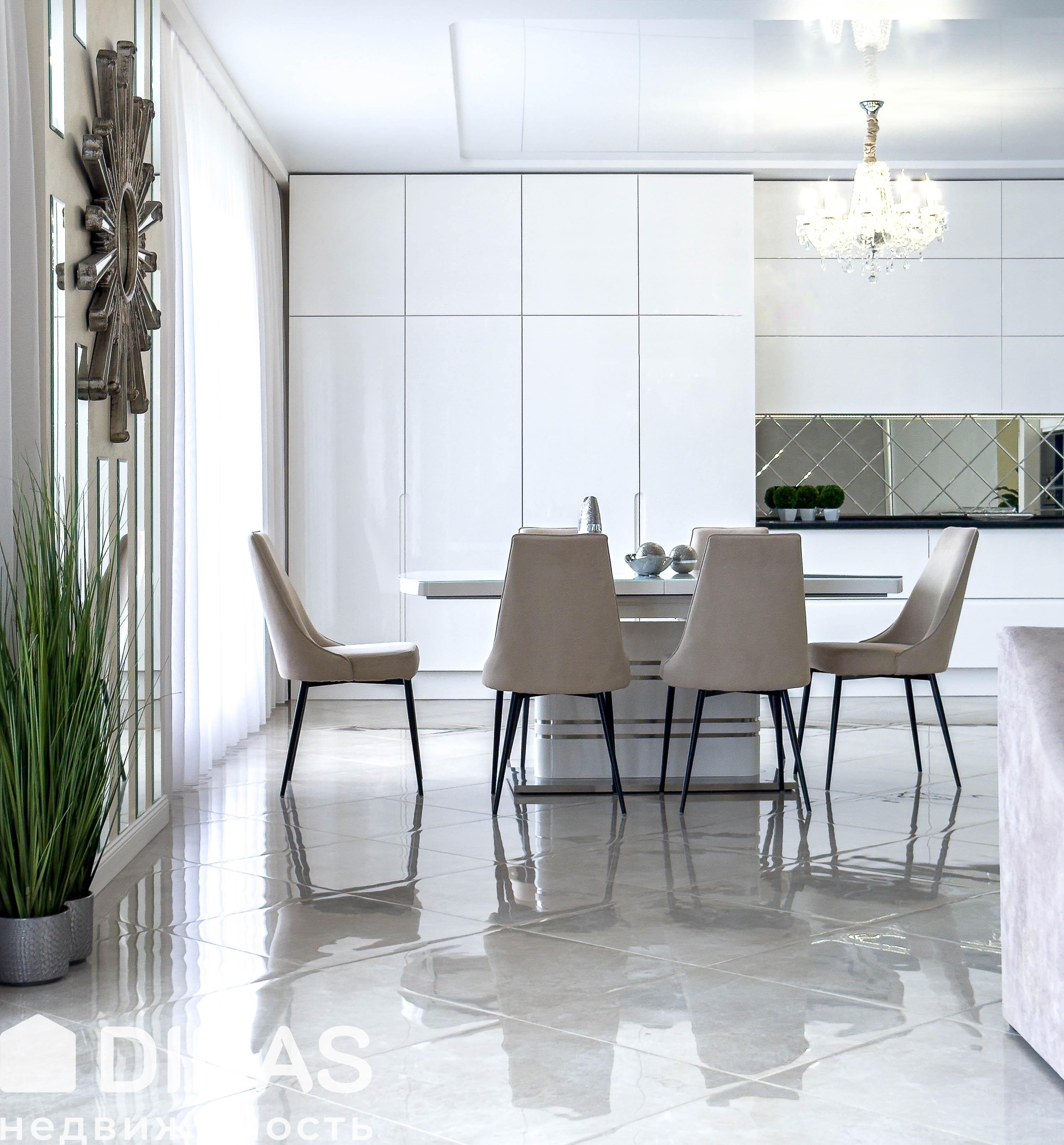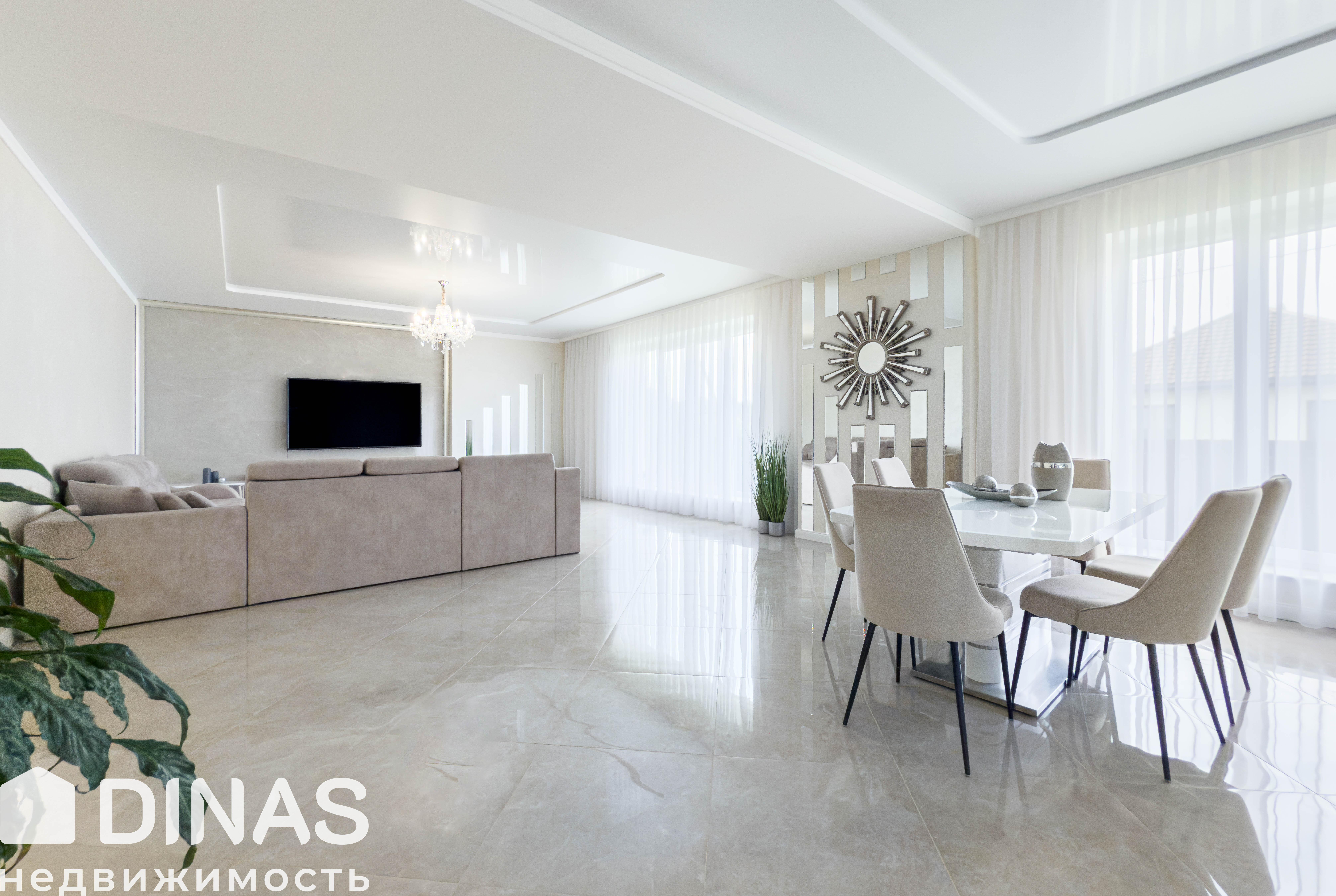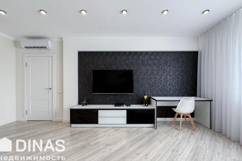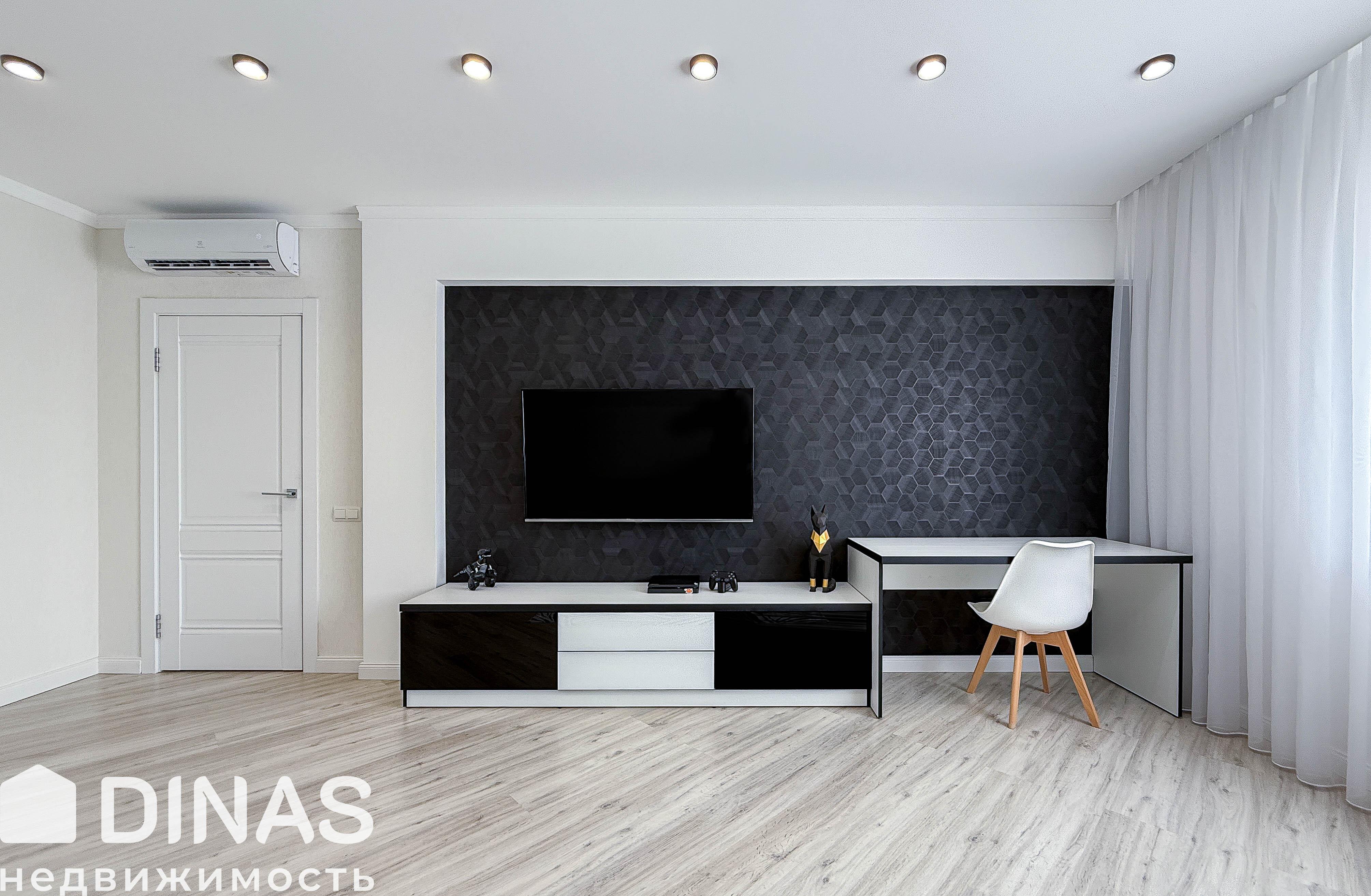- просторную гостиную с зоной TV, столовой зоной и кухней (65,5 м2);