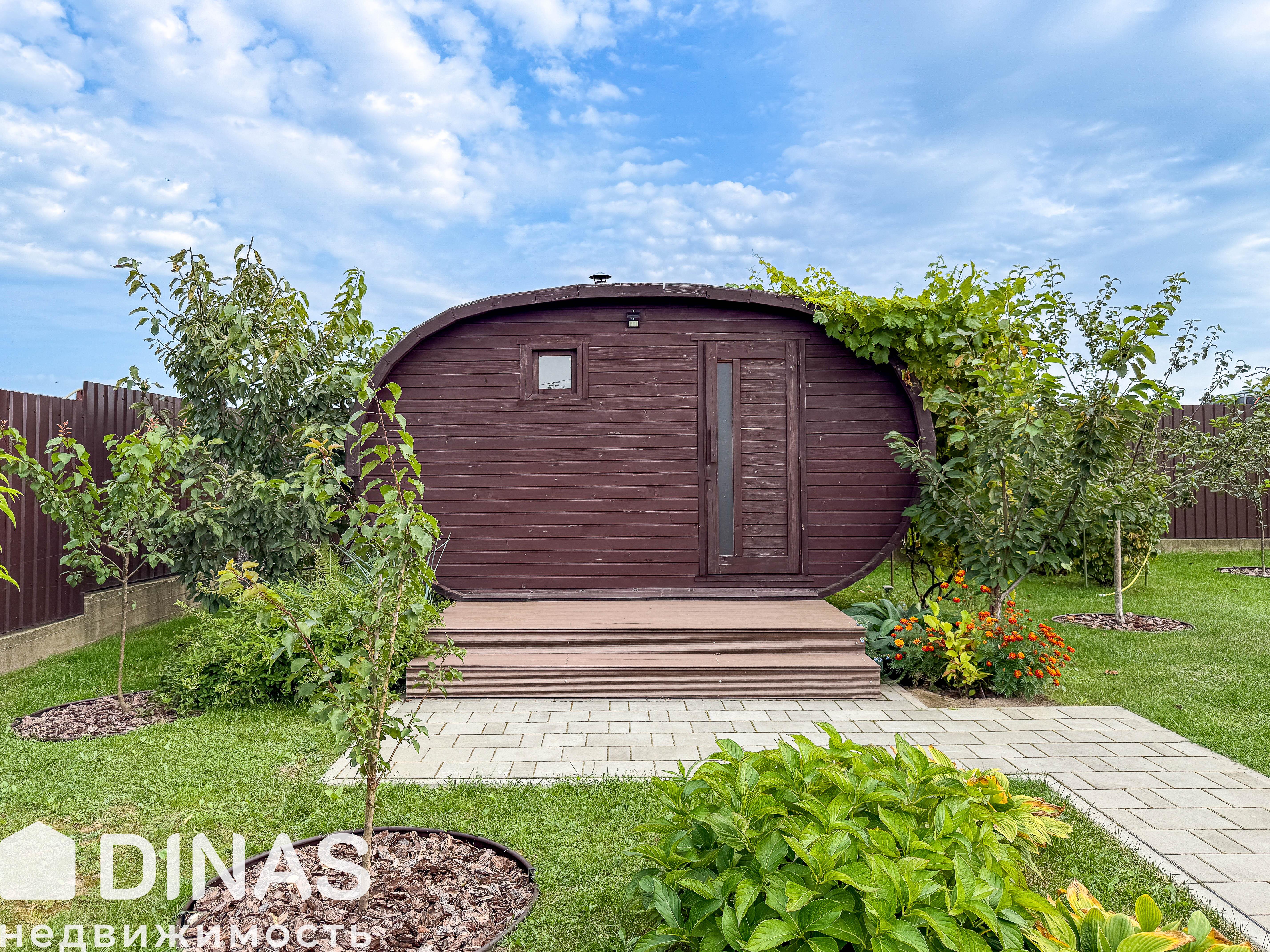 Участок 0,1512 га (15,12 соток). Территория участка благоустроена и озеленена. Высажены декоративные и плодовые деревья, включая иву, хвойные породы, персик и яблоню. Озеленение формирует комфортное пространство для отдыха и при этом сохраняет практическую ценность за счет плодовых насаждений.