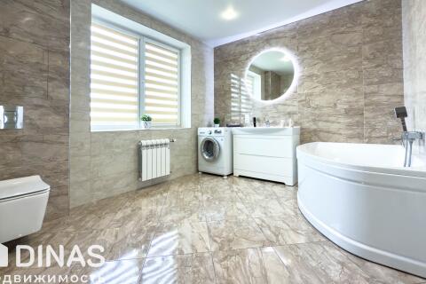 Интерьер оформлен в лаконичных светлых тонах. Дом укомплектован всей необходимой мебелью и техникой для комфортного проживания. В отделке использованы качественные материалы. Техническая часть дома представлена газовым котлом, водонагревателем, системой очистки воды, скважина. Центральное водоснабжение. Местная канализация. В агрогородке уже проведено оптоволокно, в ближайшее время будет подведено к каждому дому. Разведен проводной интернет в жилые комнаты. 3 кондиционера.