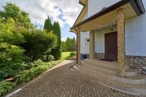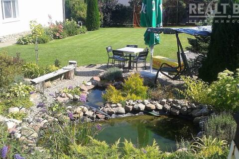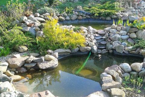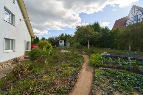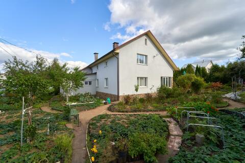 Вдоль забора высажены туи, высота около 4 - 5 метров. На участке много красивых хвойных деревьев, декоративных кустов и цветов: тисы, кипарисовики, клёны, магнолии, рододендроны, азалии, редкие сорта многолетних цветов (розы, лилейники, лилии, пионы древовидные и др. ). Так же на участке есть плодовый сад: 4 груши, 4 яблони, сливы жёлтые, 2 вишни. Рядом с садом огород: кусты малины, крыжовника, смородины, жимолость, грецкий орех, фундук, голубика, клубника и земляника. На участке имеется хозблок с верандой.