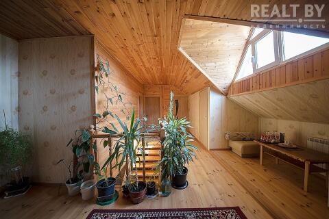 В доме два уровня - первый этаж и мансардный.
