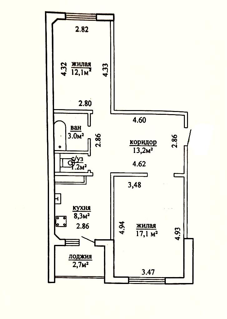 - Жилая площадь: 29.2 м2 (комнаты 12.1 м2 и 17.1 м2 — идеально подходят для создания уютного пространства, где Вы можете отдохнуть и собраться с близкими).