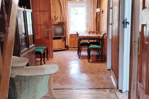 Уникальное месторасположение до ж.д 5 мин.пешком, а также отдельный вход с отдельной огороженной территорией. Квартира в квартирном дерево-кирпичном доме на 4 комнаты из них одна зальная с камином. Еще одна мансардная комната на 2 этаже. Комбинированные полы дерево + линолеум+ кафельная плитка+ бетонка. Стеклопакеты. У дома находиться сарай, гараж, обустроенная баня. Двухконтурный котел – газ, вода, отопление. Совмещенный санузел с ванной. Канализация септик.. Также вода выведена на участок. Особый комфорт и уют создает декорированный ровный участок на 6 соток, с плодовыми деревьями и кустарниками, огороженный двор. Земля частная.Теплица