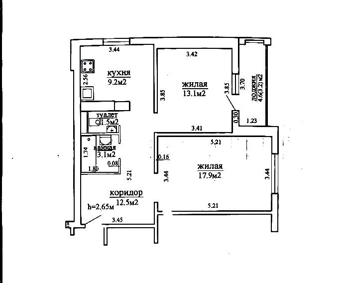 Площадь о/ж/к: 60.5 / 31 / 9.2 м²