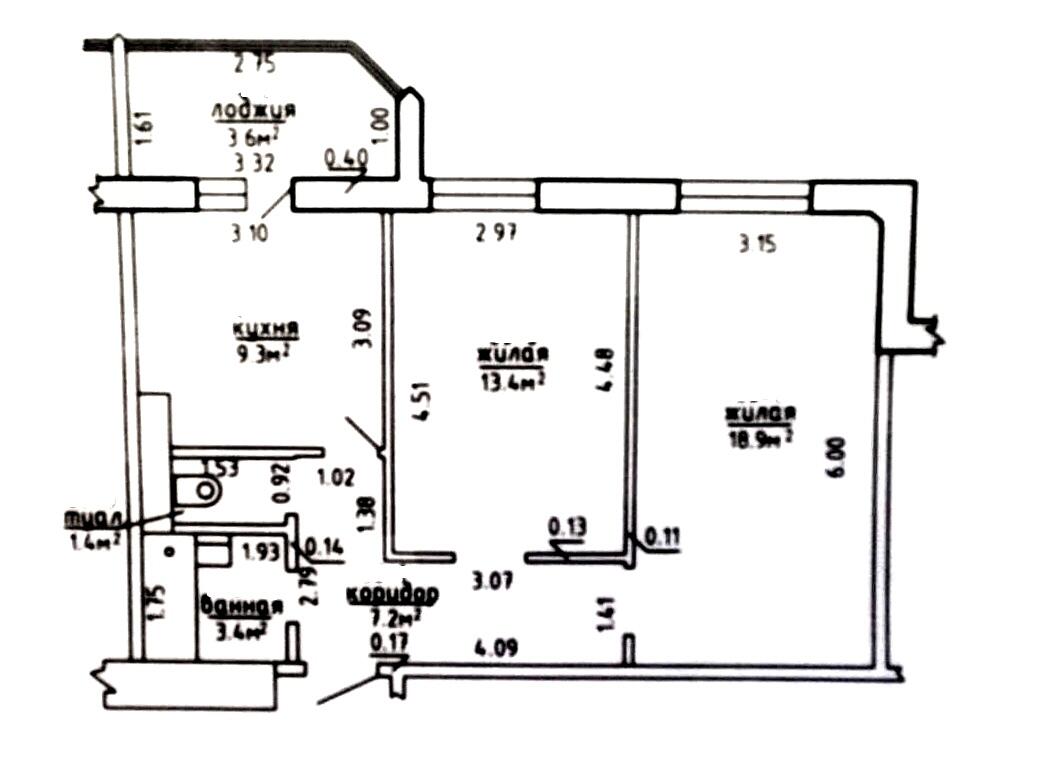Площадь о/ж/к: 57.2 / 32.3 / 9.3 м²